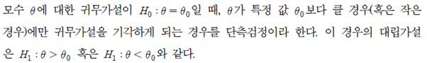 검정 통계량: 가설검정의 대상이 되는 모수를 추록하기 위해 사용되는 표본 통계량