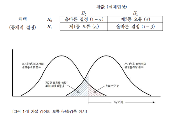 제1종 오류: 귀무가설이 참인데 잘못하여 이를 기각하게 되는 오류